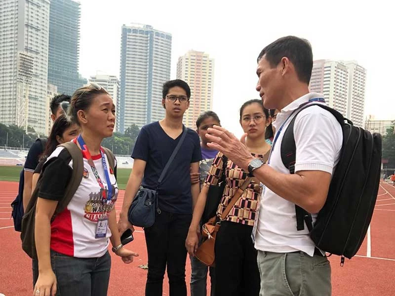 Đầu tiên là nhiều địa điểm thi đấu đang hối hả chạy đua với thời gian. Rõ nhất là sân bóng đá chính Memorial Rizal ở trung tâm thủ đô Manila chiều 22-11 (tức đúng ba ngày trước khai mạc bóng đá nam) vẫn còn bề bộn nhiều thứ cùng các công trình dang dở. Thậm chí quy định của tổ chức bóng đá là sân bóng tổ chức phải có ghế ngồi thì vẫn còn đang loay hoay khắc phục bằng cách sơn ô phân chia chỗ ngồi trên nền xi măng.