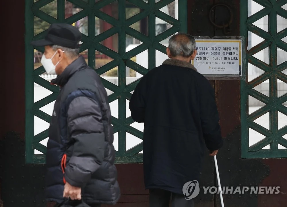 Công viên Tapgol ở trung tâm Seoul, nơi người lớn tuổi thường xuyên lui tới, đã bị đóng cửa từ ngày 21-2. Ảnh: YONHAP