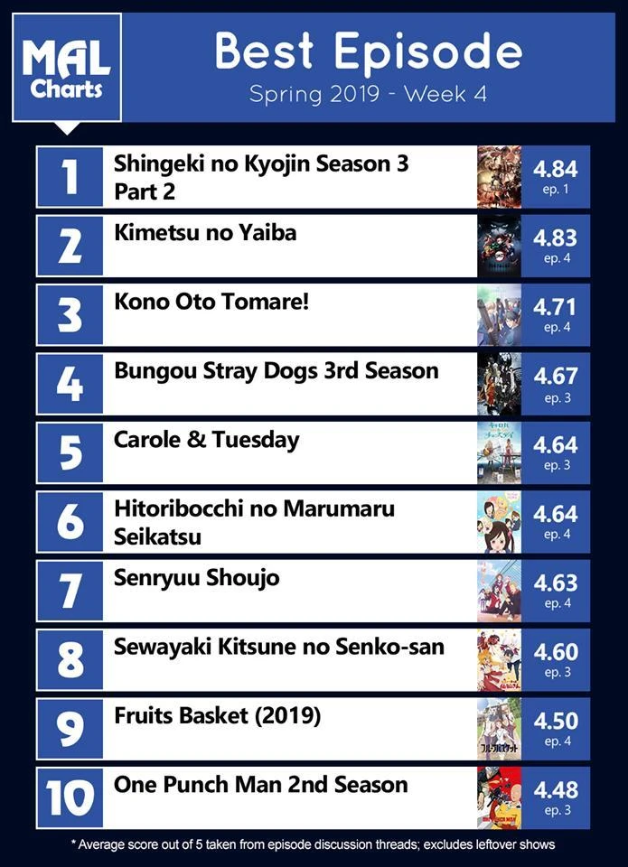 Tuy chỉ mới lên sóng tập đầu tiên của phần 2 (mùa 3) nhưng Đại chiến người khổng lồ đã đạt được rating cao nhất của tuần (theo MAL Charts).