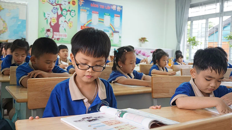 Học sinh lớp 1 Trường Tiểu học Phạm Văn Chính, quận 9, TP.HCM trong một tiết học. Ảnh: NGUYỄN QUYÊN