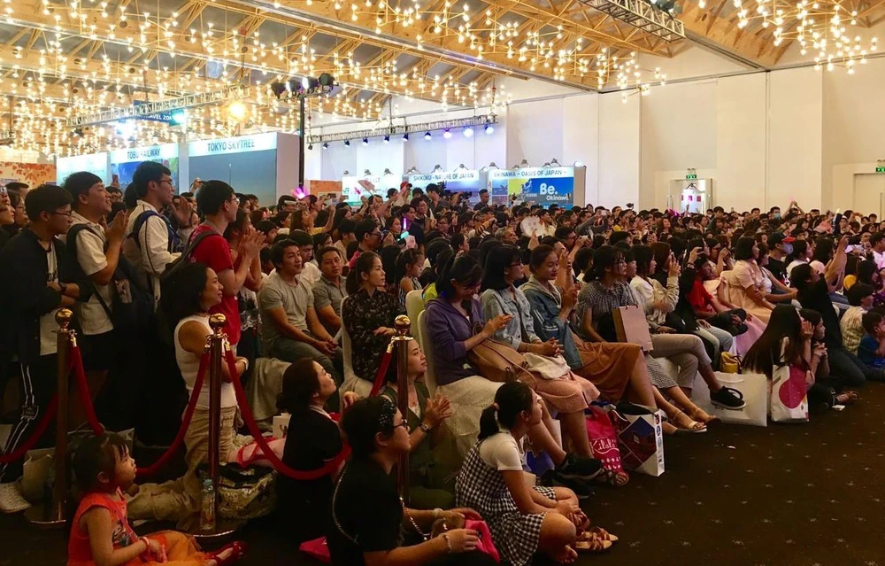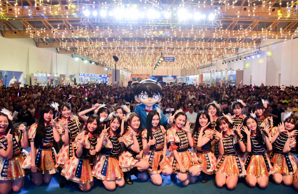 Hàng ngàn người hâm mộ vây kín SGO48 biểu diễn tại sự kiện giao lưu văn hóa Nhật Bản.