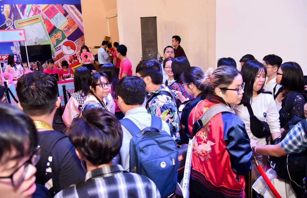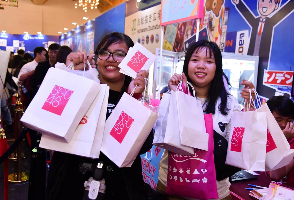 Rất đông người hâm mộ đã có mặt từ sớm để được gặp idol và mua vật phẩm lưu niệm từ gian hàng của SGO48.