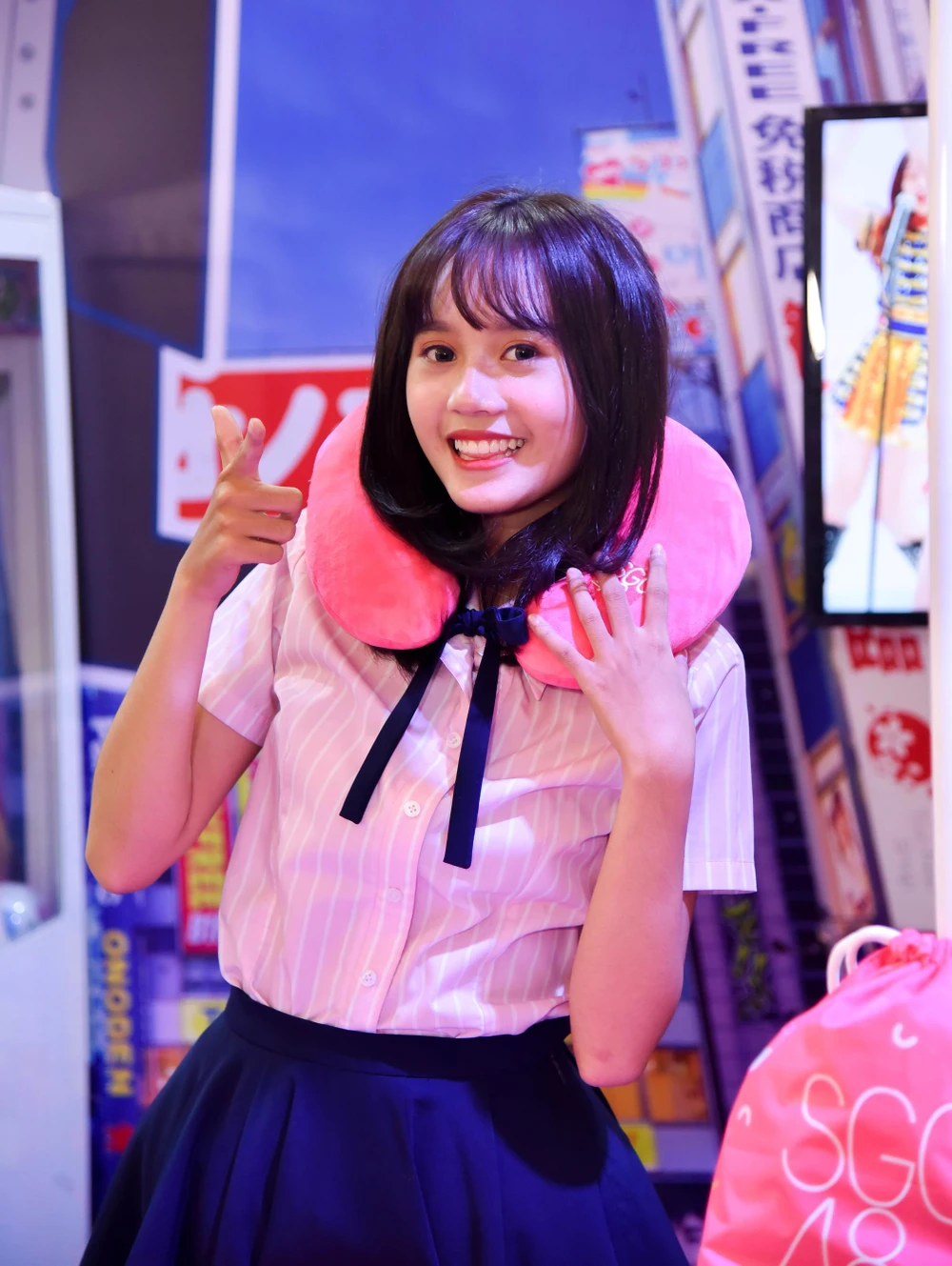 Các cô gái của SGO48 giới thiệu vật phẩm lưu niệm với fan.