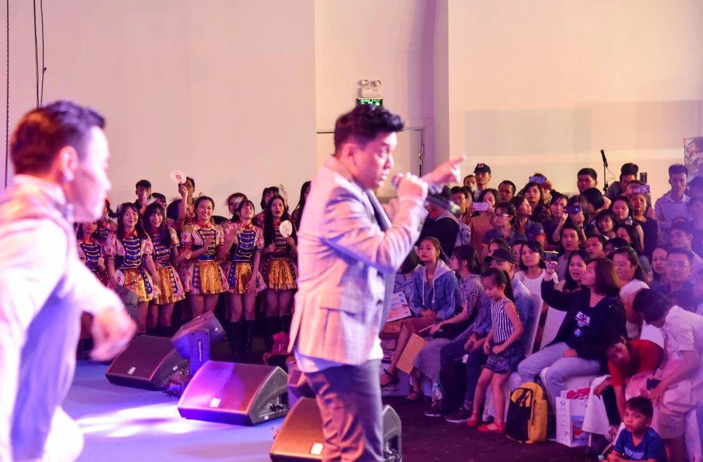 Rất đông người hâm mộ xếp hàng đợi xem biểu diễn.