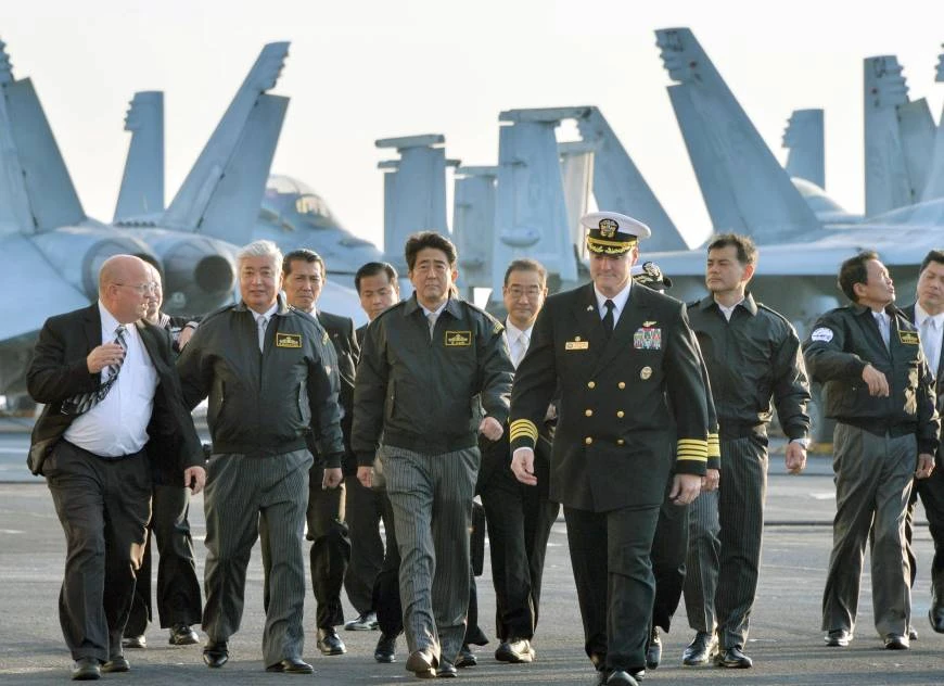 Theo tờ Japan Times, Thủ tướng Shinzo Abe đã tham quan tàu sân bay USS Ronald Reagan đậu tại cảng mới ở căn cứ Hải quân Yokosuka thuộc quận Kanagawa, Nhật Bản.