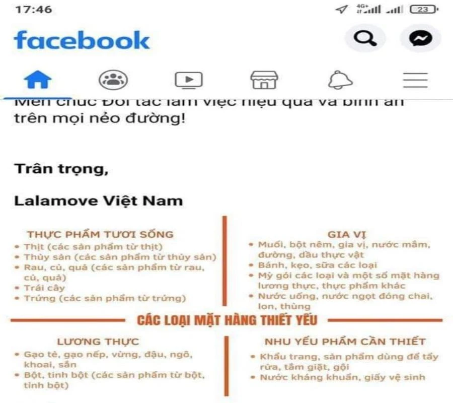Một tài xế của Lalamove đăng tải hướng dẫn về các loại hàng thiết yếu của hãng này. Ảnh: Hoài Bảo.