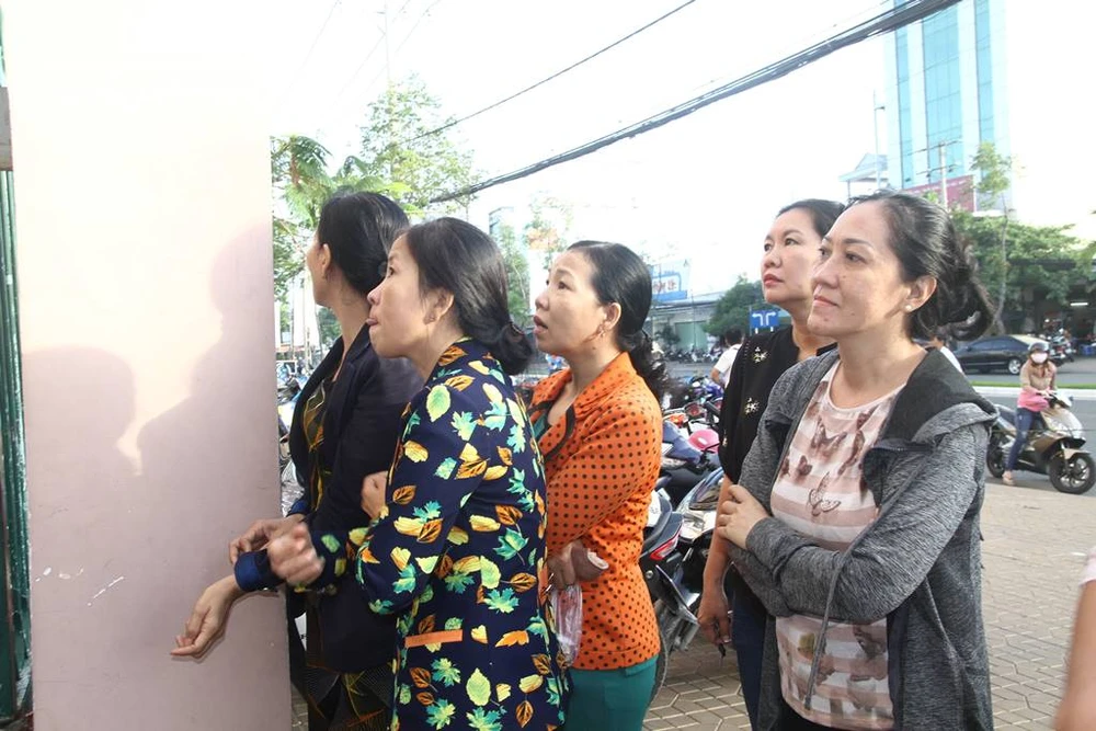 Phụ huynh dõi theo con trước điểm thi Trung tâm GDNN-GDTX quận Ninh Kiều, Cần Thơ. Ảnh: HẢI DƯƠNG