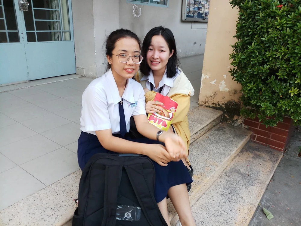 Cùng trò chuyện vui vẻ với bạn bè trước giờ thi, thí sinh Trần Thành Ân cho hay em cảm thấy thoải mái, thư giãn và tự tin. "Vì em nghĩ nếu mình căng thẳng quá sẽ khó làm bài. Năm nay em thi ban B với ban A nên đối với môn văn em cũng không lo lắng. Em thi vào Trường ĐH Y Dược TP.HCM" - Ân nói.