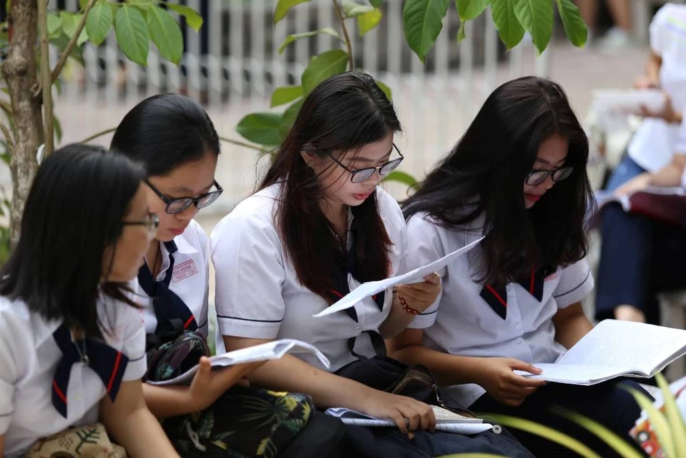 Thí sinh ôn bài trước giờ thi tại điểm thi THPT Thủ Đức. Ảnh: THỦY TRÚC
