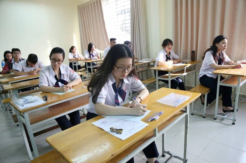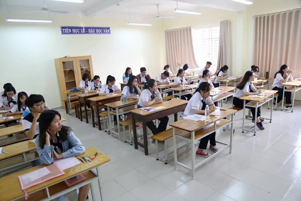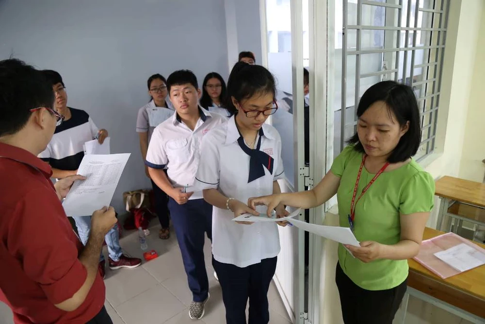 Thí sinh làm thủ tục trong phòng thi tại điểm thi THPT Gia Định. Ảnh: HOÀNG GIANG