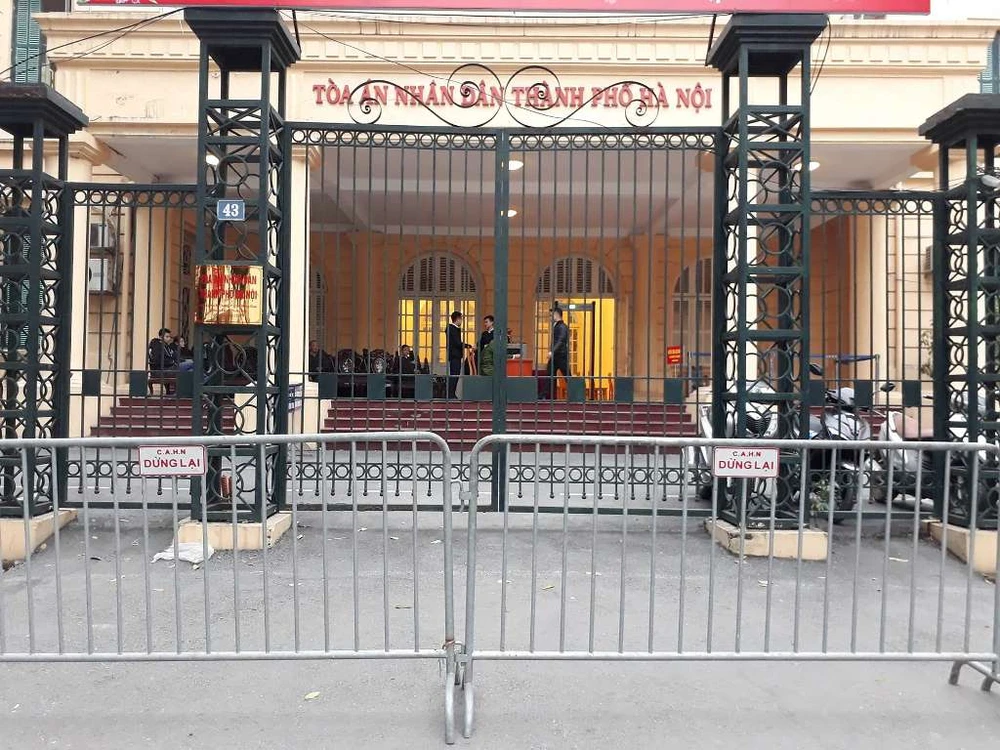 Ngay từ sáng sớm, an ninh phiên tòa được siết chặt hơn so với mọi ngày. Phía bên ngoài, không chỉ sử dụng hệ thống rào chắn trước khu vực cổng tòa, nhiều cảnh sát cũng được bố trí trực tiếp đứng tại đây để đảm bảo an ninh.