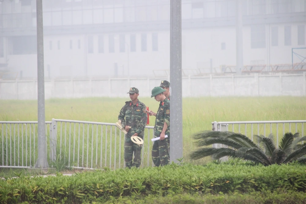 Lực lượng bộ đội liên tục rà mìn và kiểm tra an toàn tại các khu vực xung quanh nhà khách quốc tế T2.
