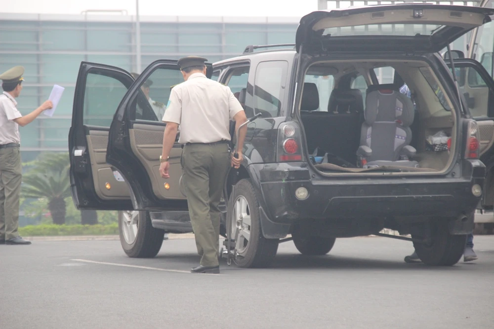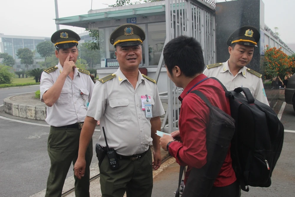 Các phương tiện ra vào cổng C5 cũng bị kiểm tra chặt chẽ. An ninh bước 1 sẽ kiểm tra toàn bộ tư trang, đồ vật và phương tiện của người ra vào.