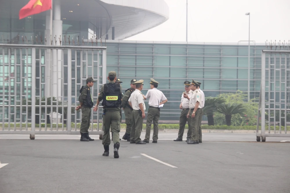 9 giờ sáng 12-11, an ninh tại sân bay Nội Bài được siết chặt nhằm bảo đảm an toàn cho chuyến bay của Chủ tịch nước Trung Quốc Tập Cận Bình sắp hạ cánh.