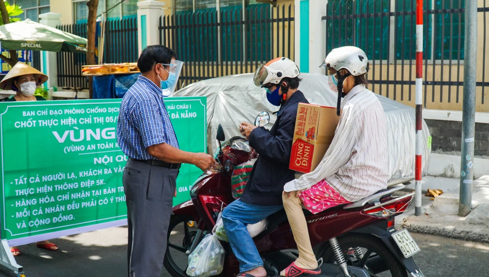 Ghi nhận tại quận Hải Châu, ngày 11-8, nhiều khu dân cư đã thực hiện kiểm soát người dân bằng cách thiết lập các “vùng xanh”.