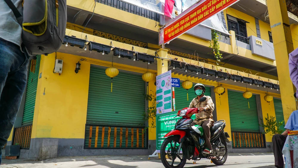 Chốt "vùng xanh" đường Hải Phòng, thuộc tổ 26 phường Hải Châu 1 (quận Hải Châu). Ảnh: B.T