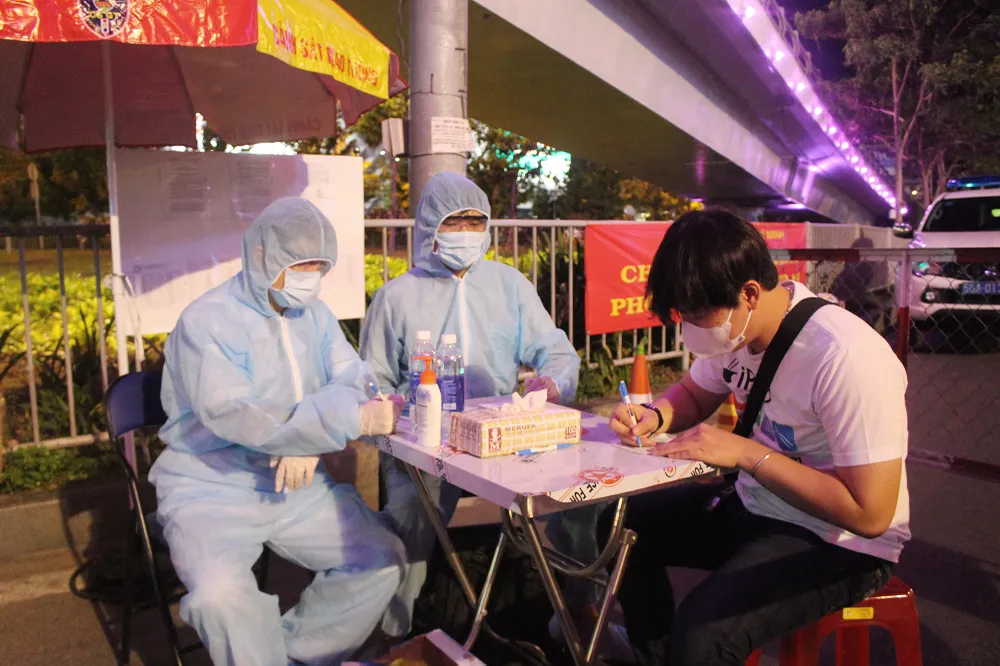 Sau khi hoàn thành khai báo tài xế được mời rời đi. Một nam tài xế cho hay anh vừa được kiểm tra nhiệt độ ở một chốt kiểm soát y tế ở quận Thủ Đức.