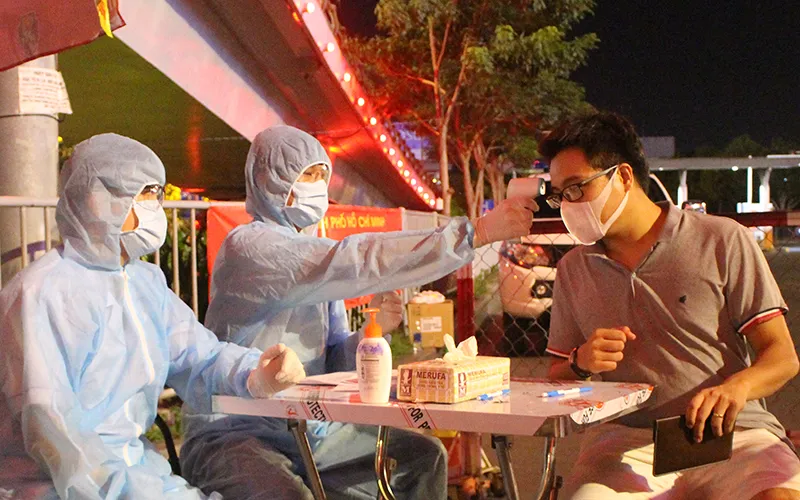 Chốt kiểm soát y tế tại sân bay Tân Sơn Nhất sẽ thực hiện kiểm tra 24/24 giờ với các ô tô di chuyển qua khu vực, kéo dài đến ngày 15-4.