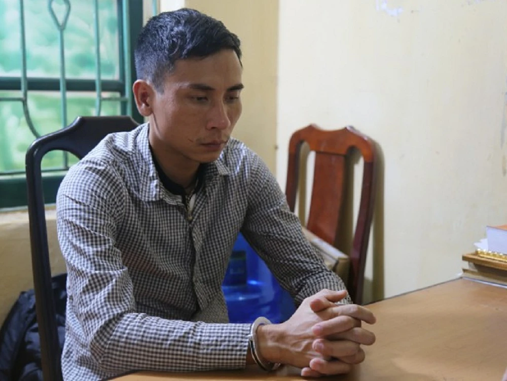 Lê Thanh Tuyền tại cơ quan công an. (Ảnh do Công an tỉnh Vĩnh Phúc cung cấp)