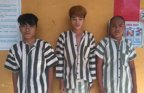 Các nghi phạm cướp taxi đang bị tạm giữ tại công an. Ảnh: H.TUYẾT