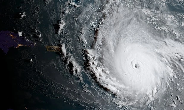 Hình ảnh từ Cục Hải dương và Khí quyển Quốc gia Mỹ cho thấy siêu bão Irma đã tăng lên cấp độ 5 - cấp bão mạnh nhất theo thang đo của Mỹ. Ảnh: EPA