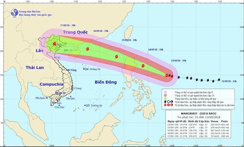 Theo Trung tâm Dự báo Khí tượng Thủy văn Trung ương, vào 1 giờ sáng nay, 14-9, vị trí tâm siêu bão ở vào khoảng 15,4 độ Vĩ Bắc; 127,7 độ Kinh Đông, cách đảo Lu-Dông (Philippiens) khoảng 680 km về phía Đông Đông Nam. Sức gió mạnh nhất vùng gần tâm siêu bão mạnh cấp 17 (200-220 km/giờ), giật trên cấp 17.