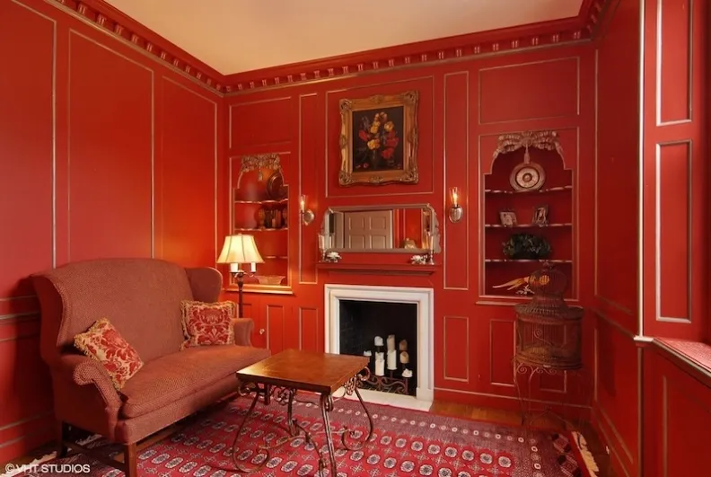 Phòng thư giãn được phủ màu đỏ sang trọng, nổi bật