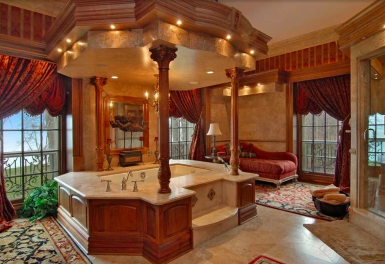Phòng tắm với bồn tắm bằng đá, rộng bằng cả một ngôi nhà của người bình thường