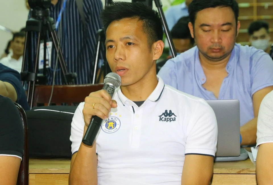 Đội trưởng Văn Quyết nêu suy nghĩ trận đấu không khán giả. Ảnh: NGỌC TRÂM