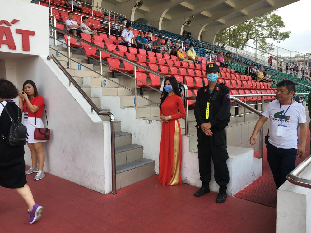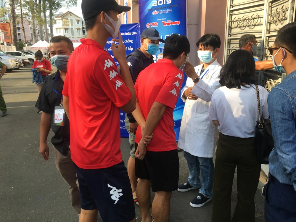 Theo quan sát của phóng viên, CĐV trước khi vào sân phải được kiểm tra thân nhiệt mới có thể vào, bên cạnh đó ban tổ chức liên tục phát loa thông báo khuyến nghị các CĐV, khách mời vào sân nên ngồi cách nhau 2 m để bảo đảm an toàn tránh dịch COVID-19 lây lan.