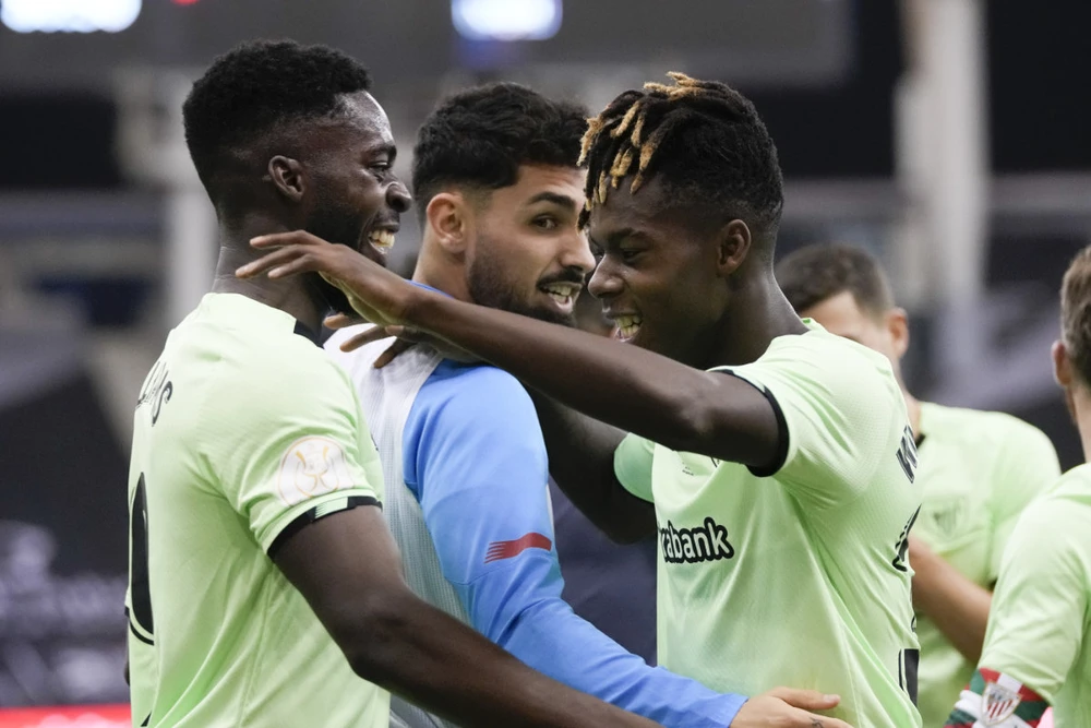 Niko Williams (bìa trái) ăn mừng bàn thắng cùng đồng đội của Bilbao. Ảnh: Getty