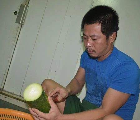 Đầu bếp Hùng chế biến món ăn trên tàu. Ảnh: TT