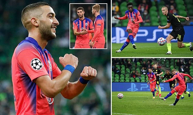 Tân binh Ziyech ghi bàn chính thức đầu tiên trong màu áo Chelsea. ẢNH: DAILY MAIL
