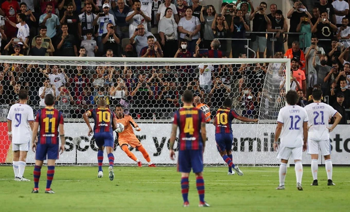 Dù vậy, Ronaldinho cũng không phải tiếc nuối quá lâu khi chính anh thực hiện thành công quả đá phạt đền thành công, đưa đội huyền thoại Barca vượt lên phút 30 của trận đấu.