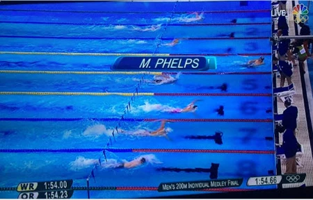 Thực tế, Lochte đã bức đi rất mạnh mẽ và luôn dẫn đầu ở 100m đầu tiên. Tuy nhiên, ở giai đoạn nước rút, Phelps đã bức phá mạnh mẽ và về nhất, bỏ cách người thứ 2 rất xa, gần 2 giây.