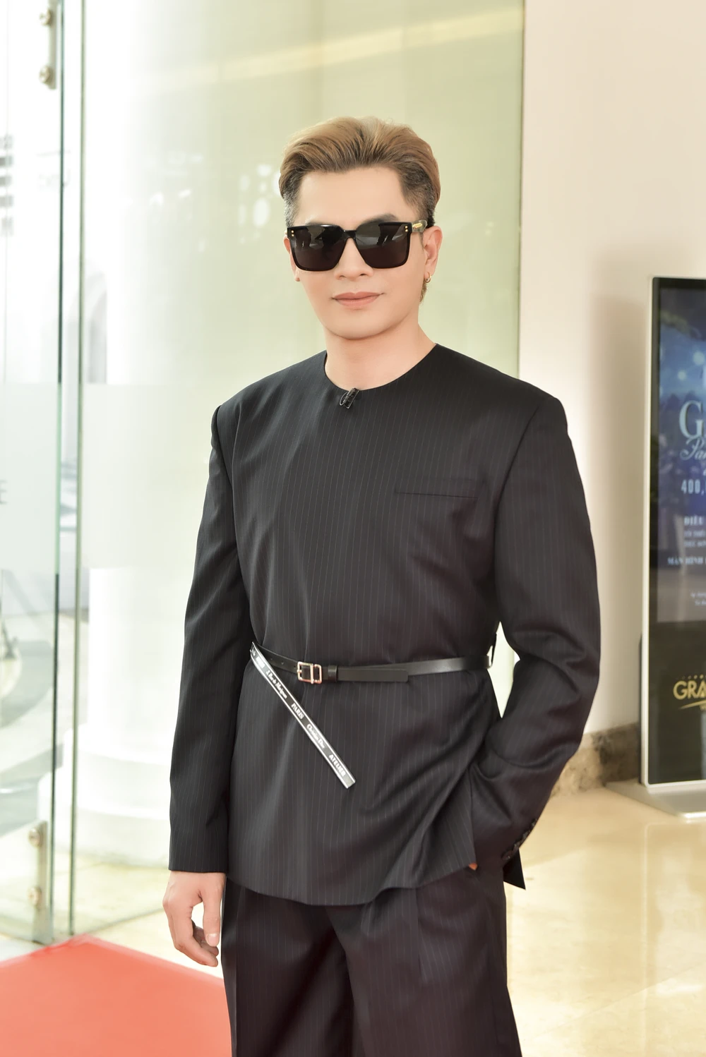 Host Nam Trung xuất hiện với trang phục mang gam màu tối giản nhưng vẫn toát lên sự quyền lực