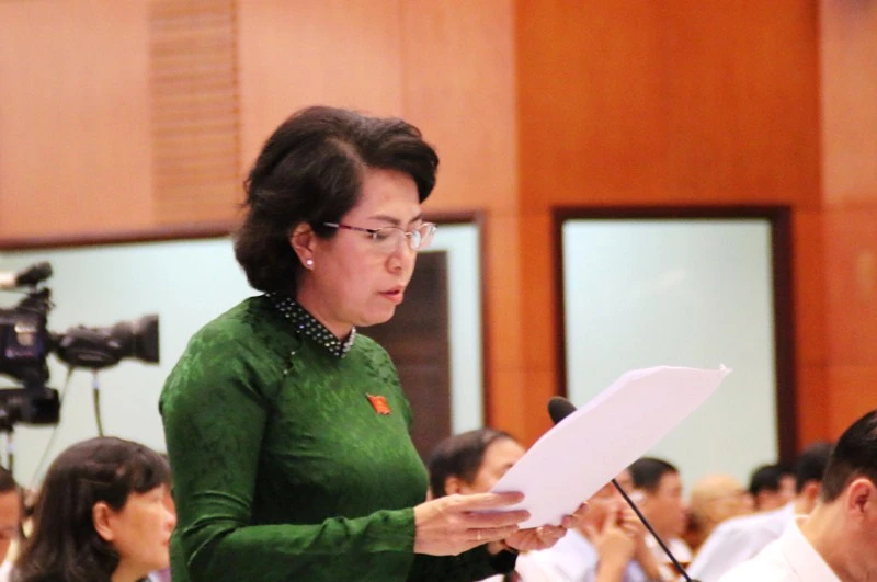 Đại biểu Tô Thị Bích Châu chất vấn tại phiên họp. Ảnh: TÁ LÂM