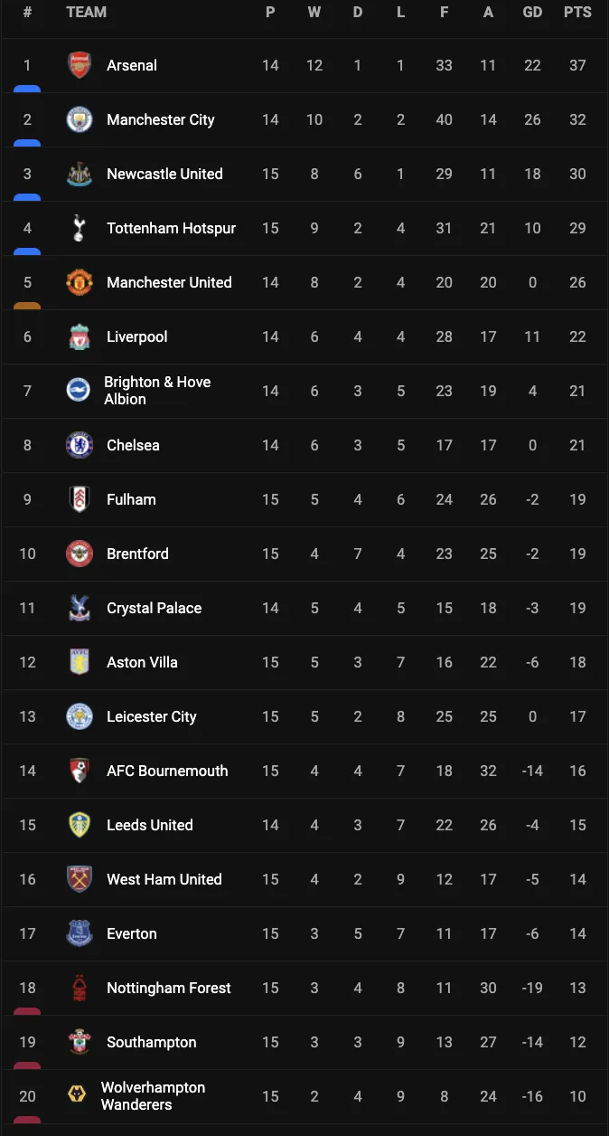 Arsenal chỉ thua một trận trước kỳ nghỉ dành chỗ cho World Cup. Nhưng kể từ đó, tiền đạo ngôi sao Gabriel Jesus dính chấn thương và phải ngồi ngoài một thời gian dài. Eddie Nketiah là phương án dự phòng duy nhất cho tuyển thủ Brazil, khiến hy vọng giành danh hiệu đầu tiên sau 19 năm của Arsenal bị nghi ngờ.