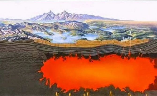 Siêu núi lửa Yellowstone nằm dưới công viên quốc gia cùng tên thuộc các bang Wyoming, Montana và Idaho của Mỹ. Giống như núi lửa Toba, “con quái vật” Yellowstone ẩn náu bên dưới hồ nước yên ả. Các nhà nghiên cứu địa chất khẳng định lượng mắc-ma khổng lồ trong lòng núi lửa đủ khả năng xóa sổ nước Mỹ, đồng thời đẩy nhân loại vào tình thế khốn cùng.