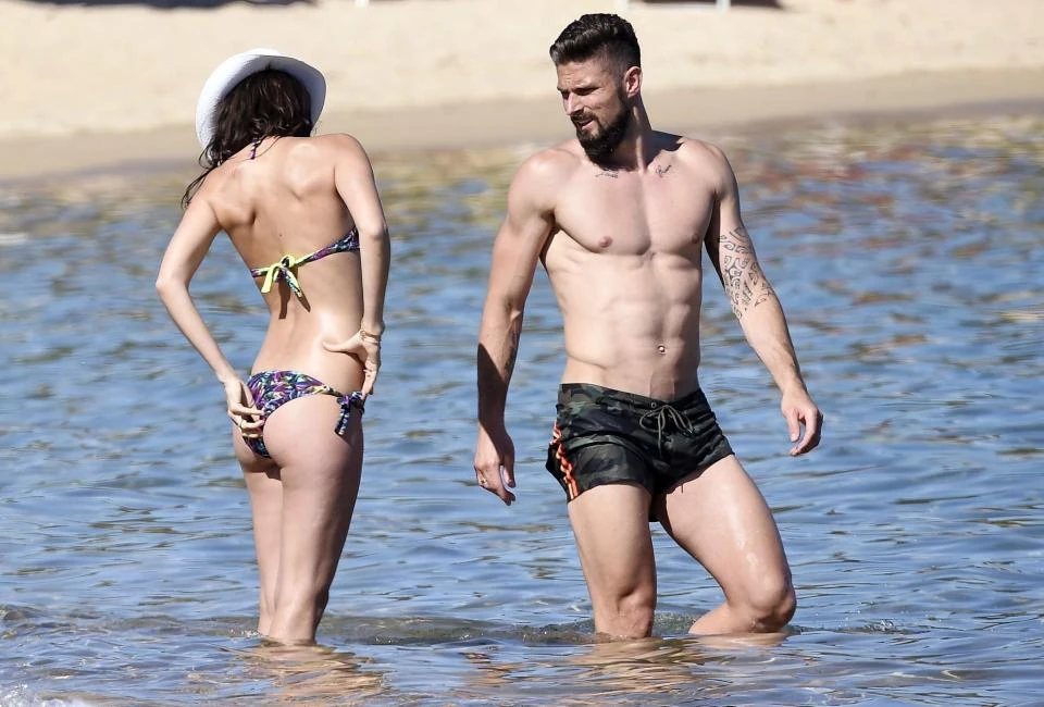 Olivier Giroud và vợ Jennifer tận hưởng kỳ nghỉ của họ tại Sardinia sau một mùa giải dài tiền đạo người Pháp “cày ải” cho Arsenal.