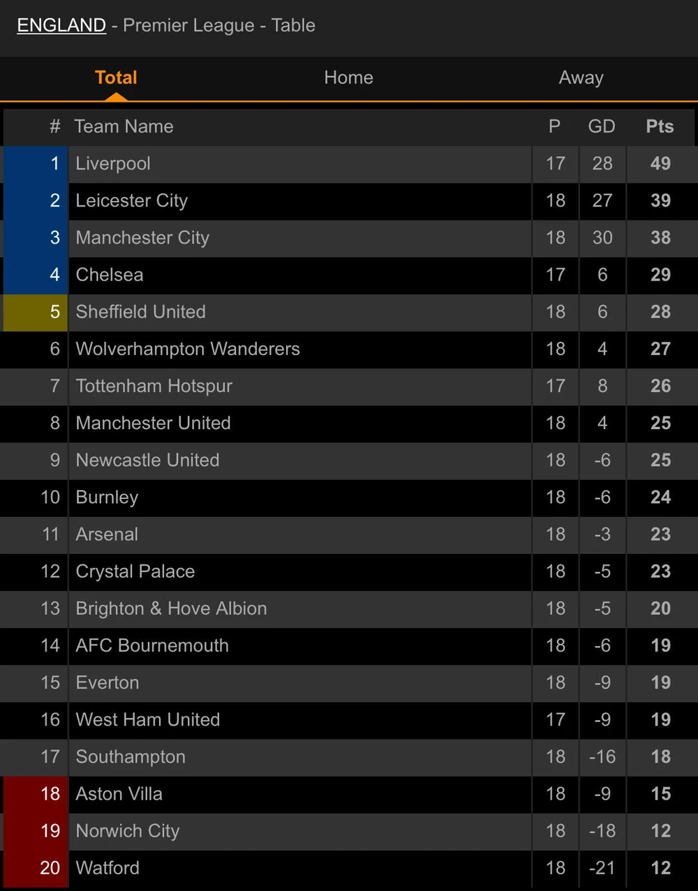 Để đội cuối bảng giành chiến thắng gây sốc với tỉ số 2-0, MU mất đi cơ hội áp sát tốp 4. Ở vòng đấu này, đội đang xếp hạng tư là Chelsea sẽ chạm trán Tottenham tạo nên trận cầu đinh của vòng 18 Premier League. Hiện sau 18 vòng đấu, MU có được vị trí thứ tám với 25 điểm.
