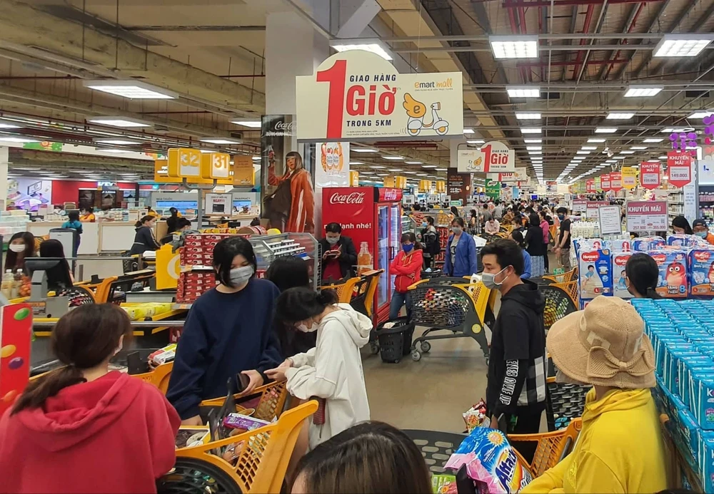 Người dân đến siêu thị Emart tại quận Gò Vấp mua đồ dự trữ rất đông vào chiều 30-5. Ảnh: NGUYỄN YÊN