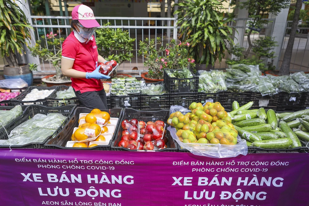 Ông Phạm Đức Thông (khối vận hành siêu thị AEON) cho biết, hưởng ứng lời kêu gọi của Sở Công Thương, thì siêu thị di động được mở bán từ ngày 13-7 và kéo dài đến hết ngày giãn cách theo Chỉ thị 16.