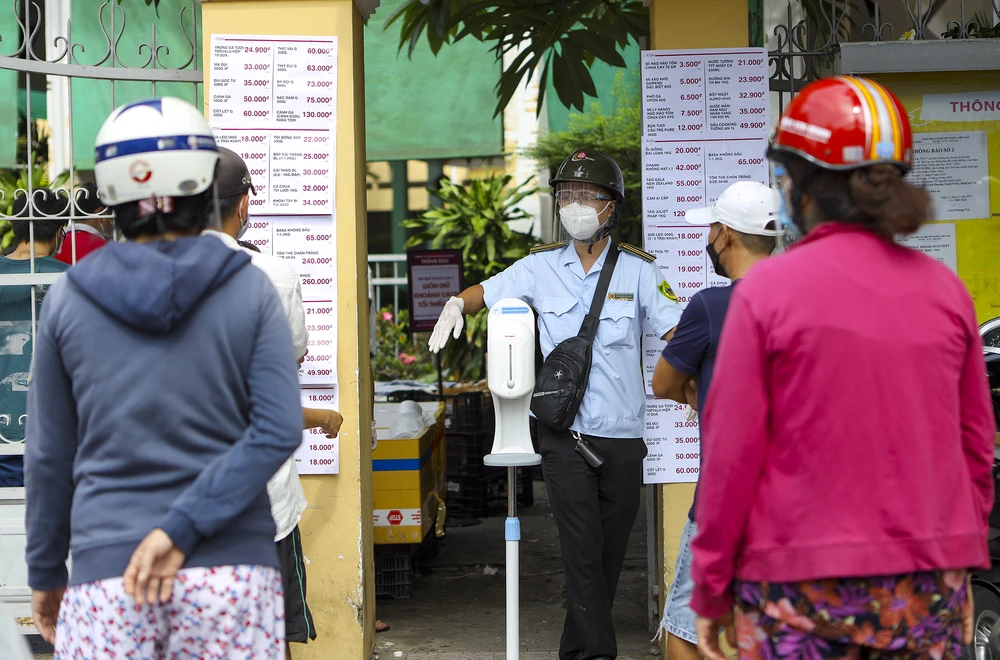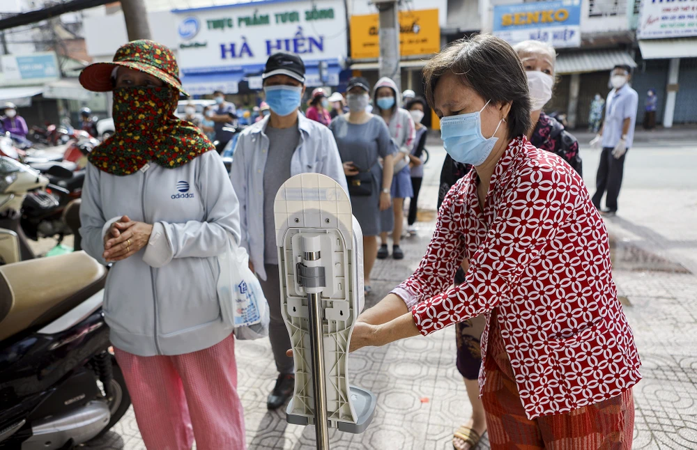 Người dân sát khuẩn tay trước khi vào bên trong.