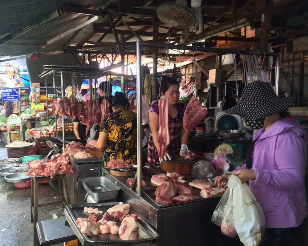 Khảo sát tại một số chợ lẻ như Hoàng Hoa Thám (quận Tân Bình), chợ Gò Vấp (quận Gò Vấp) vào ngày cuối tuần nhưng vắng người mua. Thịt heo bày đầy trên các quầy sạp, giá thịt heo không biến động.