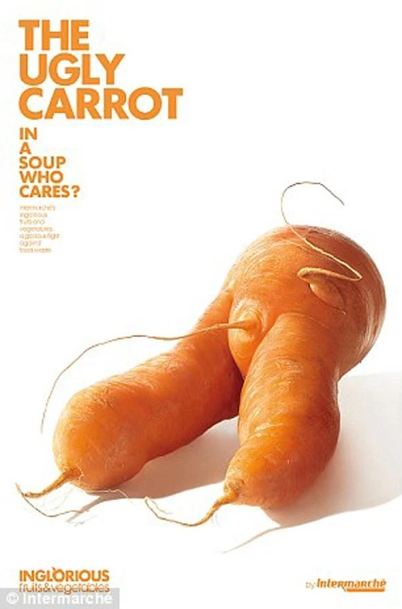 Intermarché, chuỗi siêu thị lớn thứ 3 ở Pháp đã tung ra chiến dịch bán trái cây, rau củ với hình thù biến dạng, vốn không được mấy người ưa chuộng, bằng cách giảm giá thành của chúng.