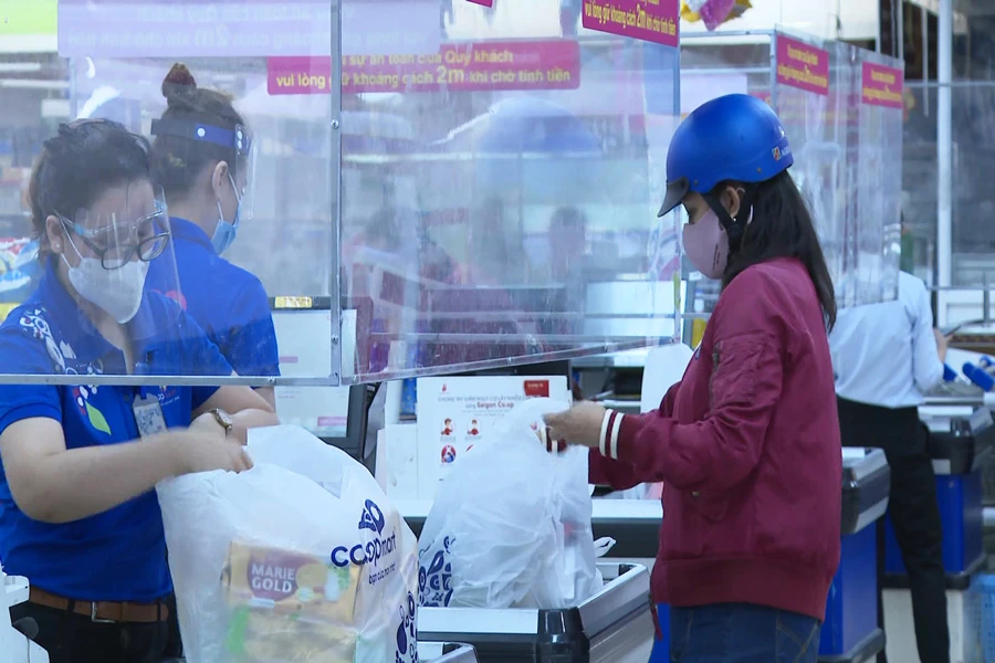 UBND TP.Mỹ Tho thống nhất cho siêu thị hoạt động trở lại sau thời gian phong tỏa thành phố để tầm soát diện rộng SARS-CoV-2. Ảnh: PV