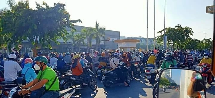Emart Gò Vấp kẹt cứng do dòng người đổ xô mua sắm, gây ùn tắc một đoạn đường. Ảnh: CTV Kim Oanh
