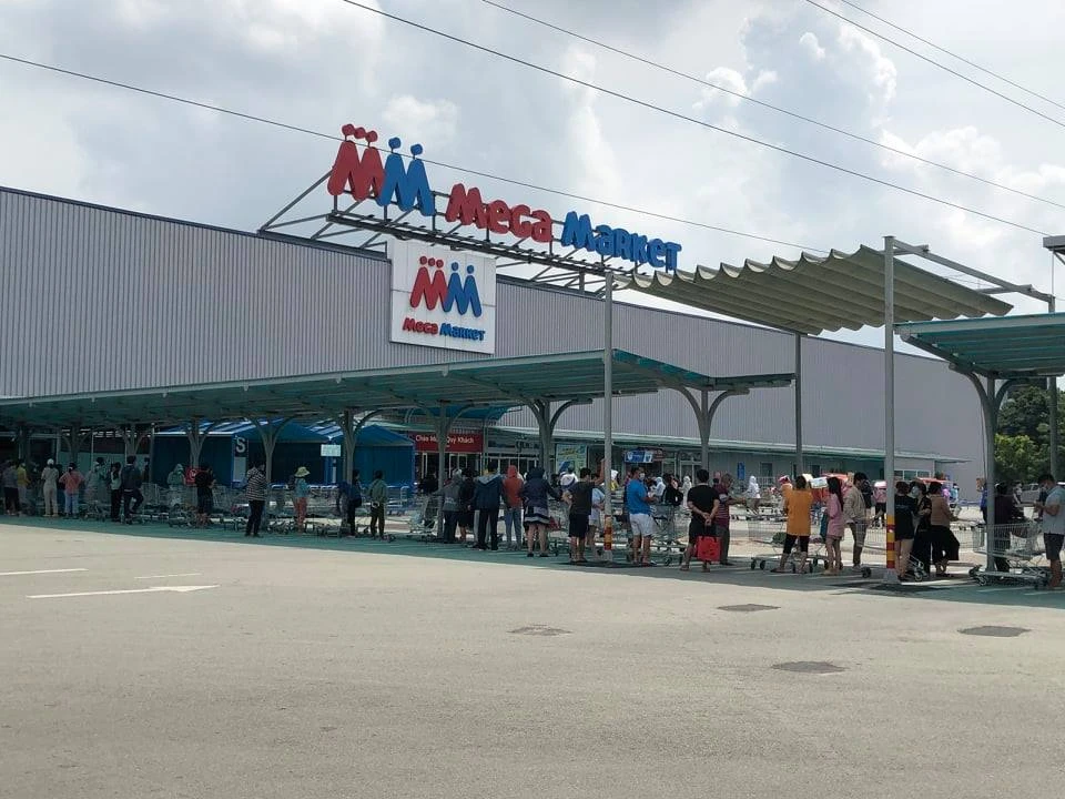 Chị Tô Thanh Vân (quận 12) cho biết, chị đã xếp hàng 3 tiếng đồng hồ tại Mega Market quận 12 nhưng chưa vô mua được thực phẩm.