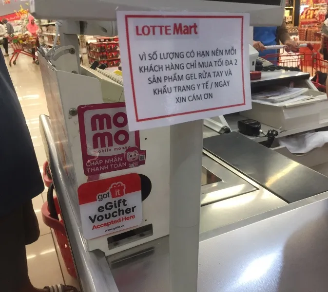 Tại siêu thị Lotte Mart thông báo đến người mua hàng.